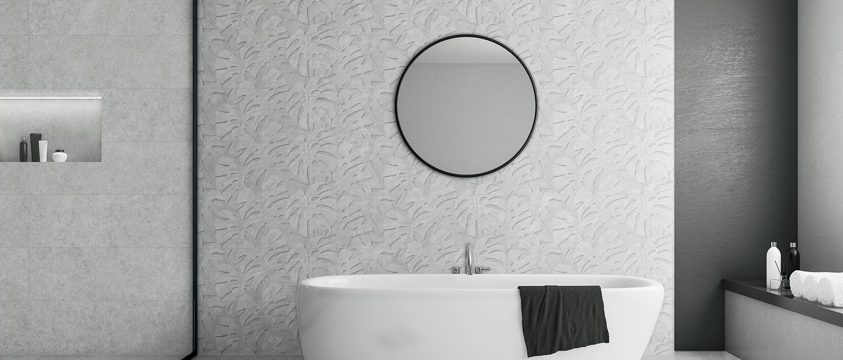 Porcelánico efecto piedra en tono gris con textura natural inspirada en la piedra Bateig.
