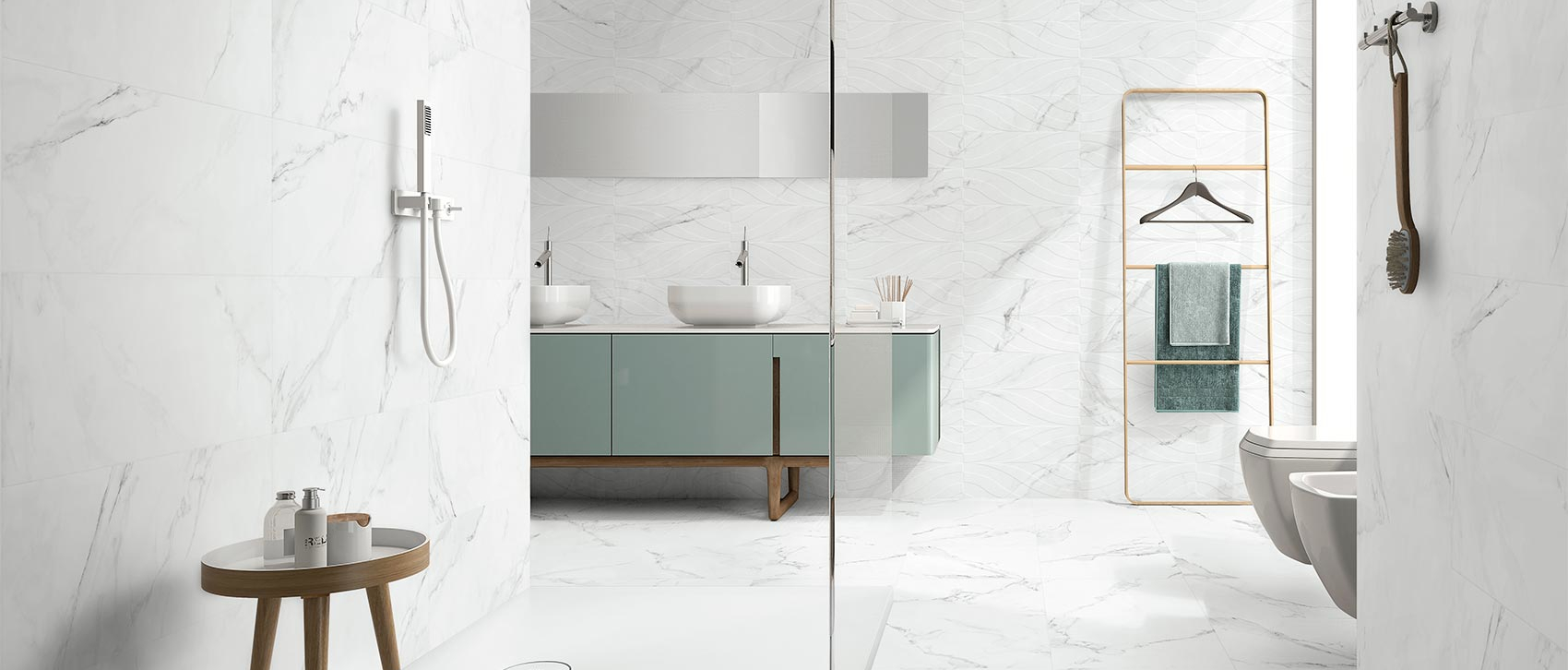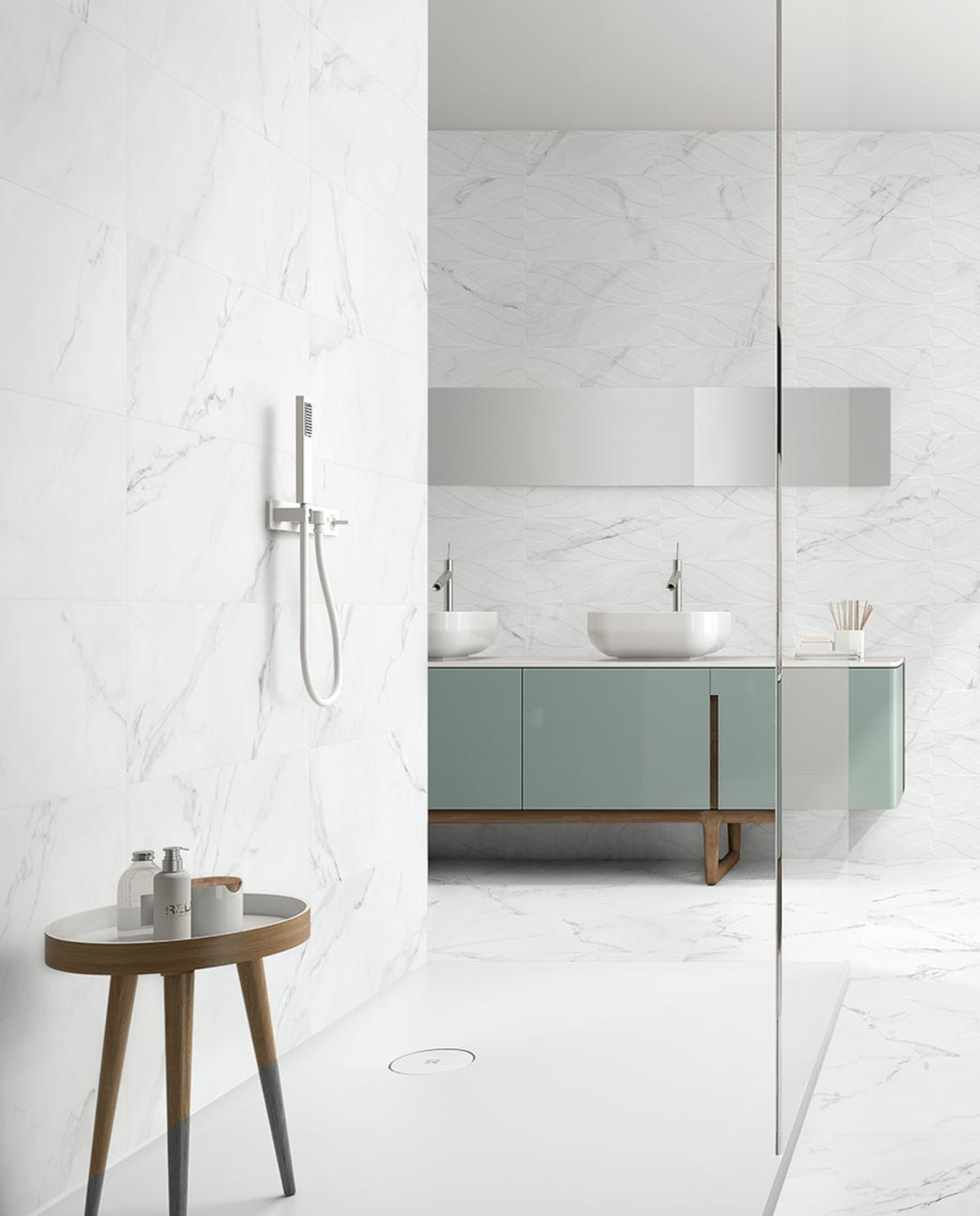 Porcelánico blanco con vetas suaves de inspiración marmórea que aportan elegancia discreta.