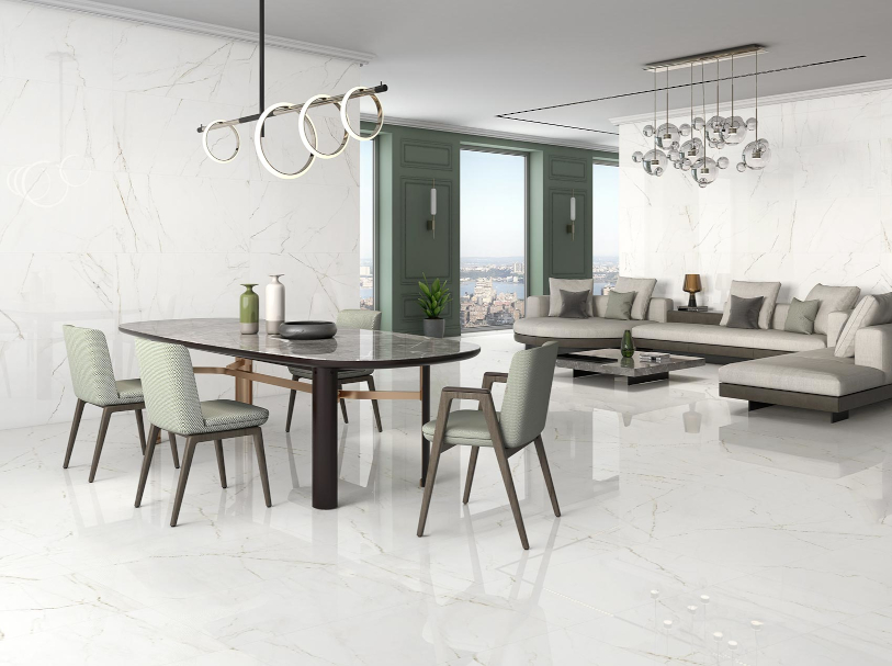 Porcelánico efecto mármol en tono blanco con vetas doradas en formato gran formato elegante. Su acabado soft ofrece una estética refinada y luminosa. Ideal para espacios contemporáneos que buscan sofisticación y amplitud. Porcelanato español PROCONCEPT, fabricado en España. Formato disponible: 60×120 cm.