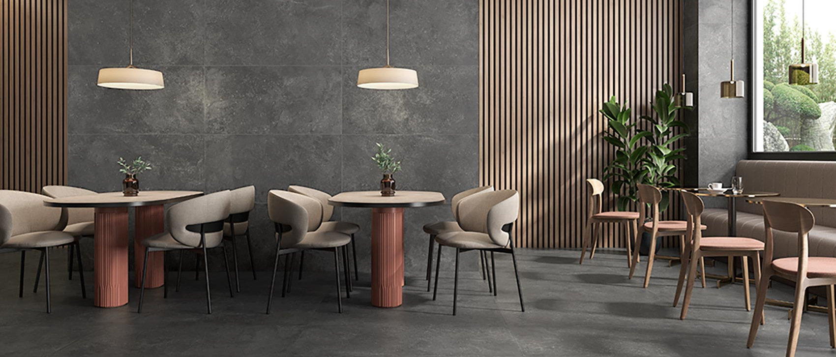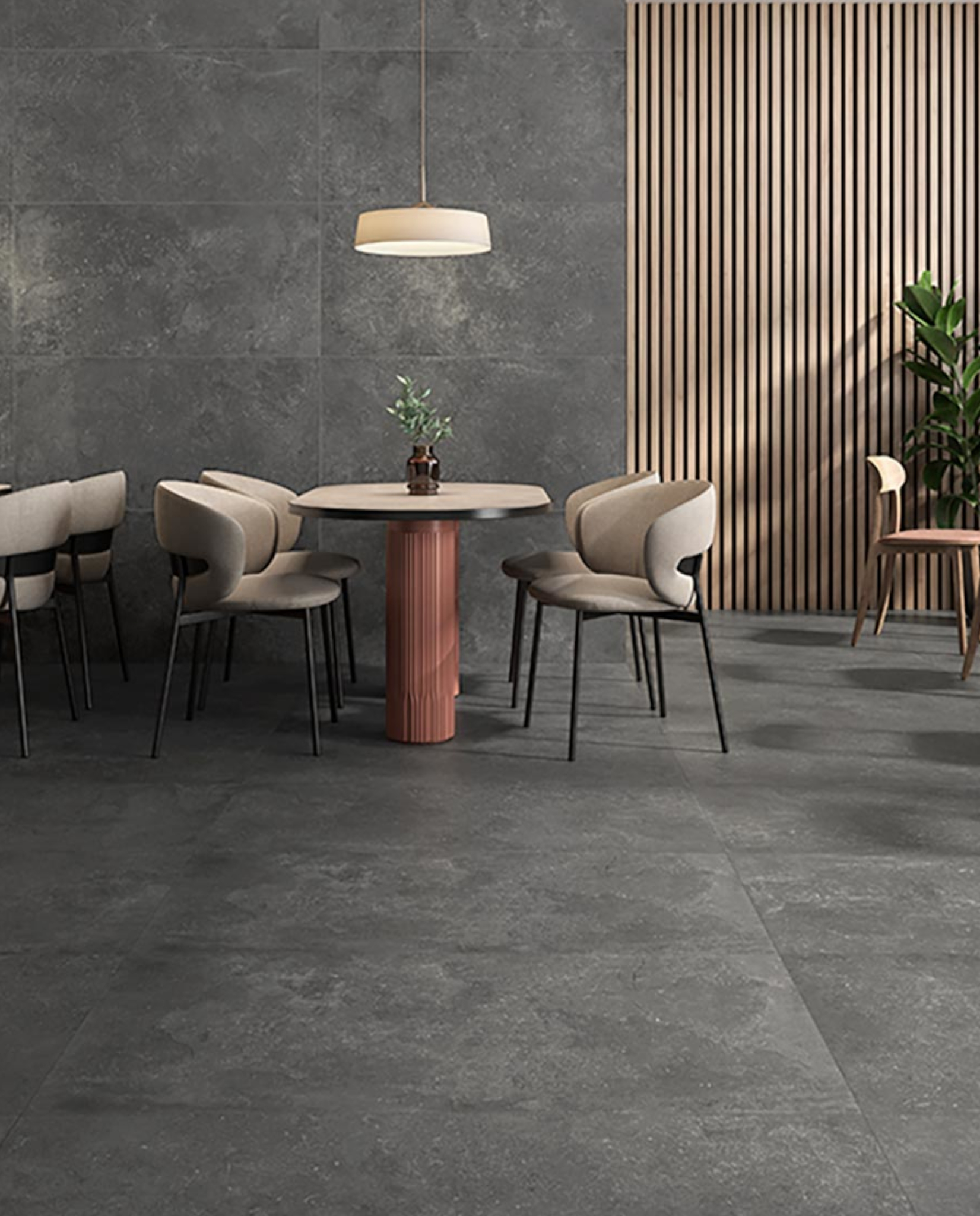 Porcelánico efecto piedra en tono gris carbón profundo con matices minerales y una textura pétrea de gran realismo. Su acabado mate ofrece una estética industrial y sofisticada, ideal para espacios modernos que buscan carácter, elegancia y una fuerte presencia visual. Porcelanato español PROCONCEPT, fabricado en España. Formato disponible: 60×120 cm
