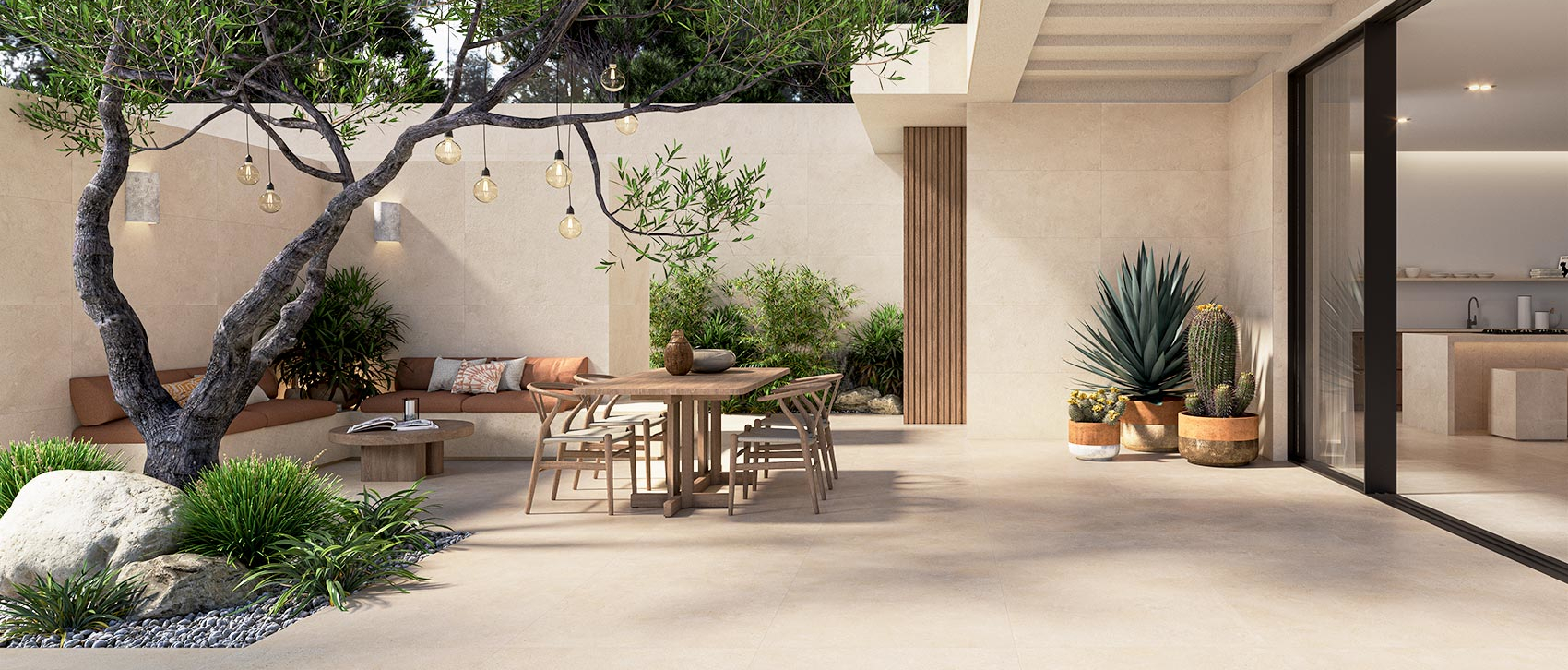 Porcelánico efecto piedra en tono crema suave con una superficie de grano fino y textura natural. Su acabado mate ofrece una estética minimalista y equilibrada, ideal para proyectos de exterior o interior que buscan continuidad visual y una sensación de amplitud luminosa. Porcelanato español PROCONCEPT, fabricado en España. Formato disponible: 60×120 cm