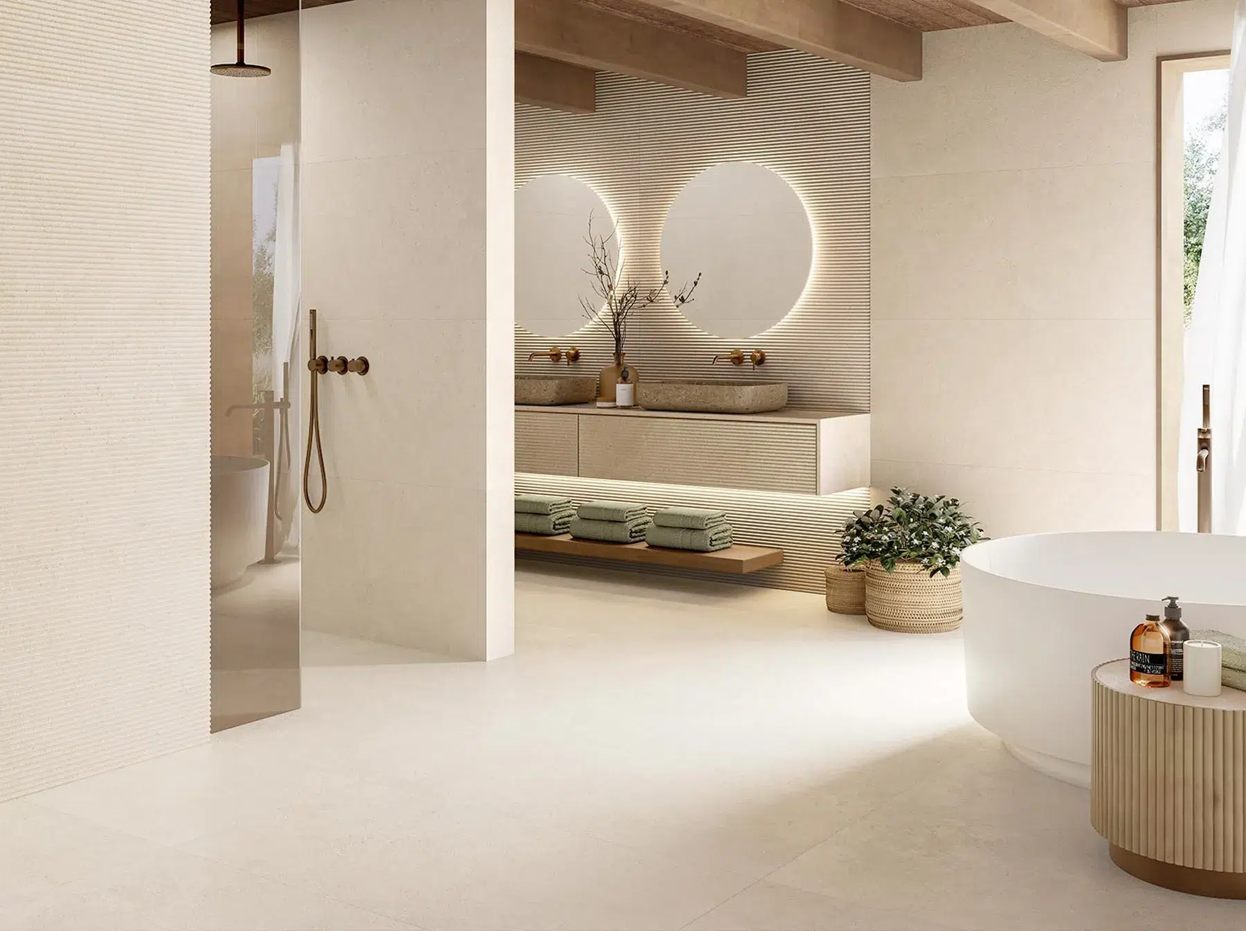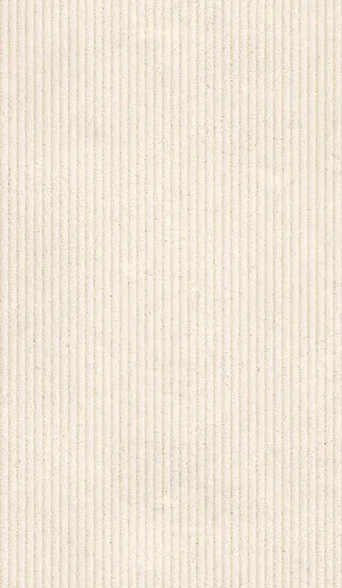 El decorado en formato 59,5×119.2 cm presenta un relieve lineal que añade una dimensión táctil y visual, evocando la delicadeza de las tallas artesanales y aportando un carácter distintivo a la colección. Dorcia Stone trasciende la apariencia plana de la cerámica tradicional. Su superficie presenta un relieve lineal arquitectónico que interactúa con la luz, creando un juego de sombras suaves que aporta profundidad y calidez a cualquier ambiente.