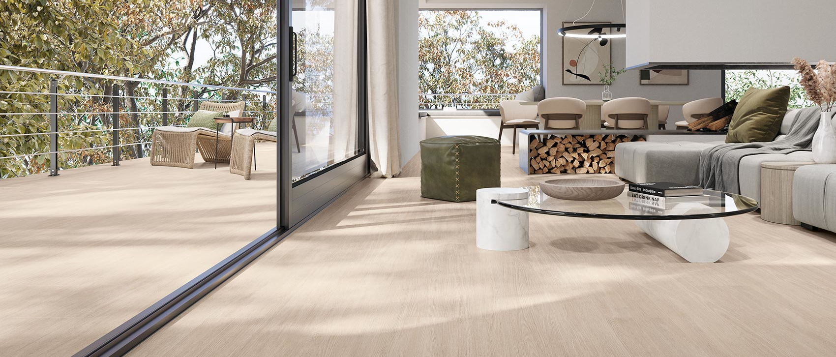 Porcelánico efecto madera en tono roble natural con un veteado suave y una textura que imita fielmente la madera clara. Su acabado mate ofrece una estética nórdica y equilibrada, ideal para espacios que buscan luminosidad, sencillez y una atmósfera de calma y confort. Porcelanato español COLORKER, fabricado en España. Formato disponible: 20×120 cm