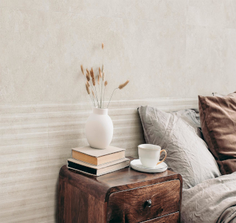 La superficie sugiere una textura delicada, casi textil, que aporta profundidad sin recurrir a contrastes fuertes. El resultado es una atmósfera serena, sofisticada y muy funcional para espacios donde se busca armonía visual.