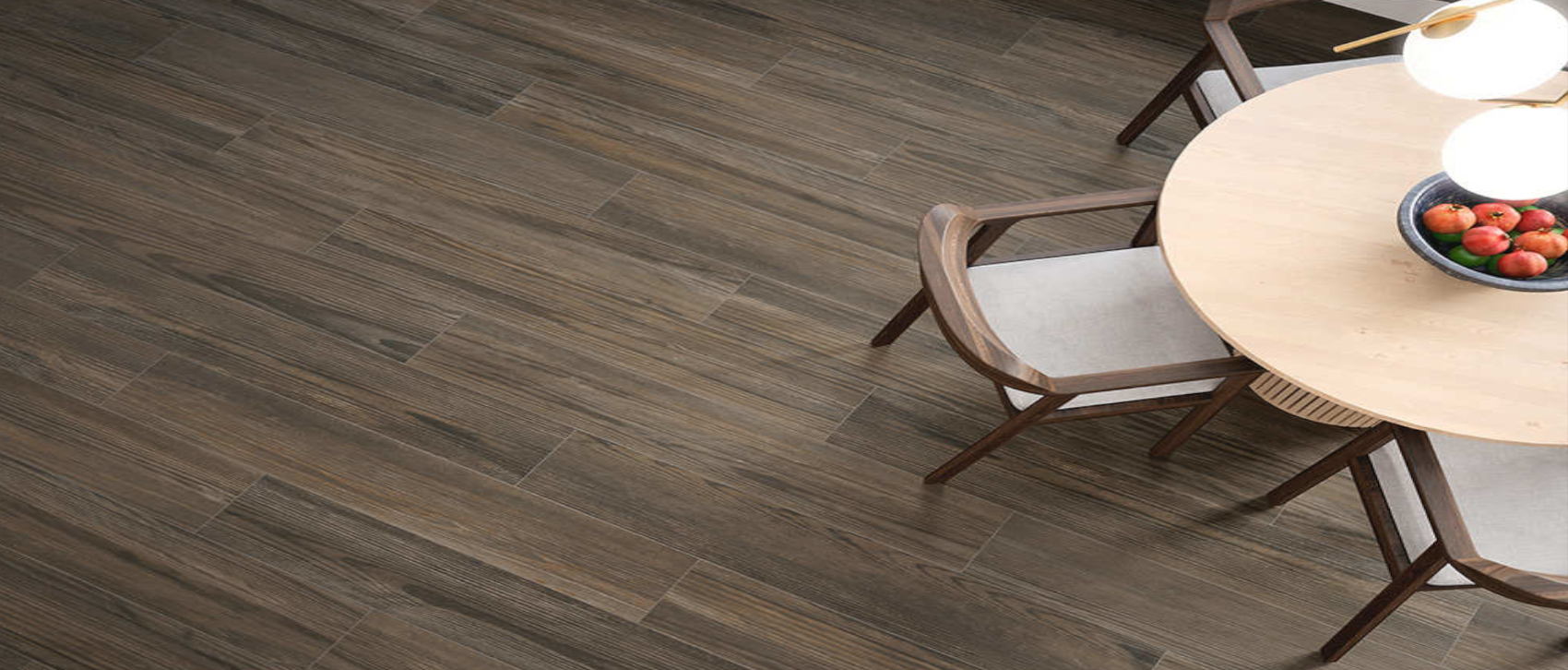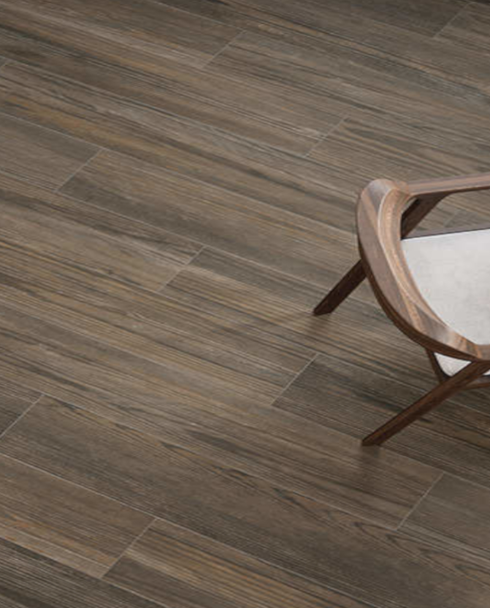 Porcelánico efecto madera en tono nogal con vetas profundas y carácter elegante.