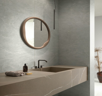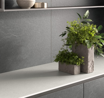 Con una base clara y una dispersión de fragmentos negros de pequeño formato, esta superficie ofrece un contraste nítido y elegante que transmite modernidad. Su diseño mantiene una estética limpia pero con suficiente textura visual para evitar planos monótonos, siendo ideal para espacios contemporáneos de alto tránsito visual. Disponible en plancha de 20 mm, destaca por su equilibrio entre frescura, diseño y presencia.