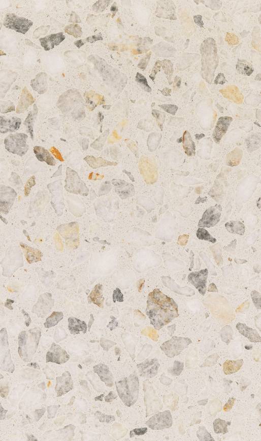 Su apariencia transmite una calma sofisticada. Los fragmentos se perciben como una mezcla pétrea sutil y orgánica que da movimiento a la superficie sin romper la armonía, logrando espacios serenos, limpios y con una sensación de diseño bien resuelto.
