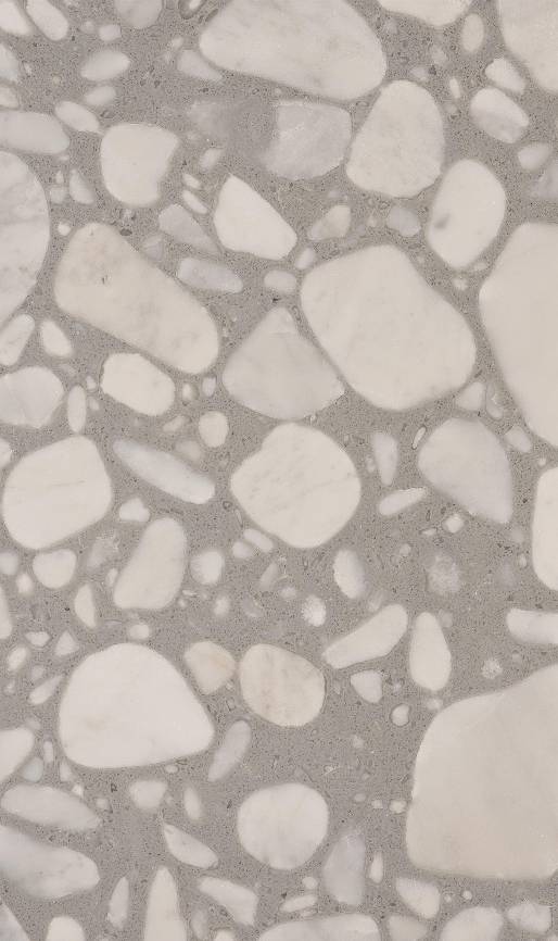 Su patrón crea una sensación de movimiento orgánico y equilibrio visual al mismo tiempo. Las formas redondeadas aportan suavidad, mientras la base gris añade profundidad, dando como resultado una superficie con carácter, volumen visual y una elegancia muy actual.