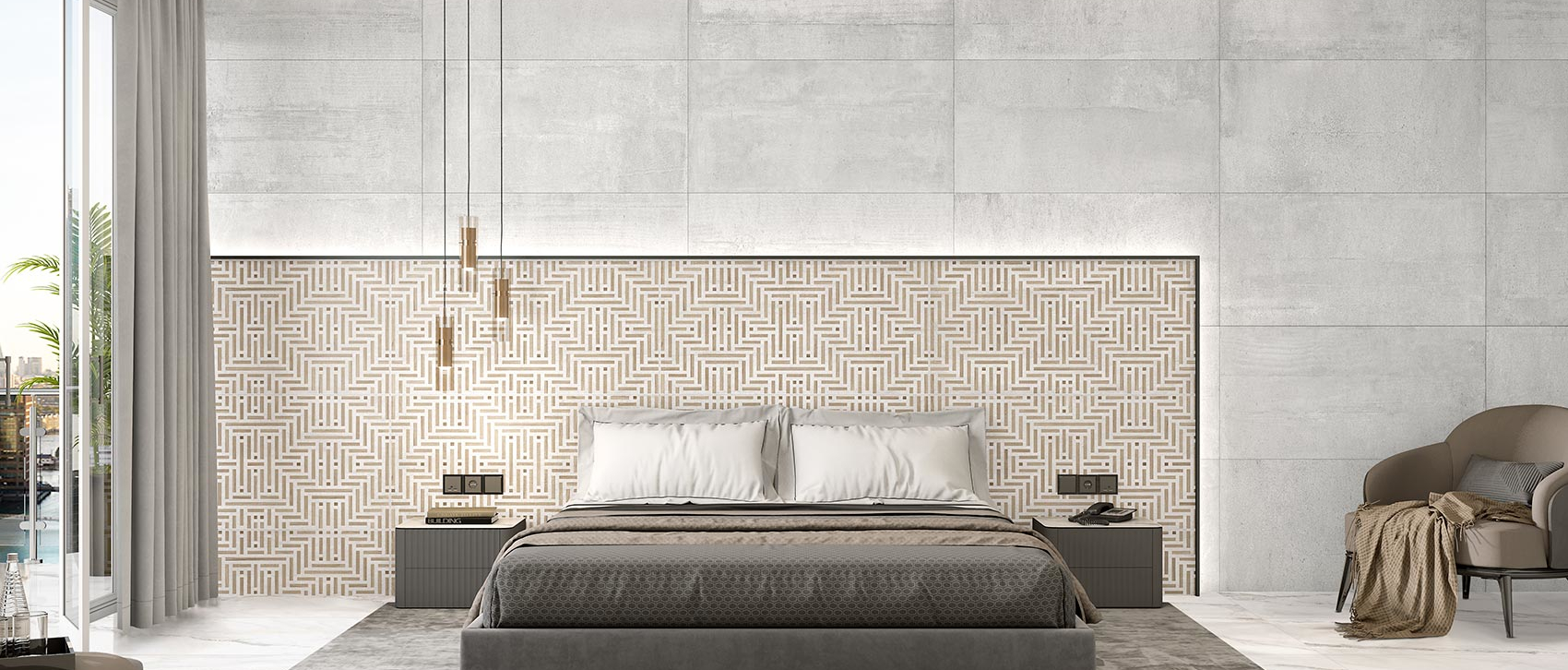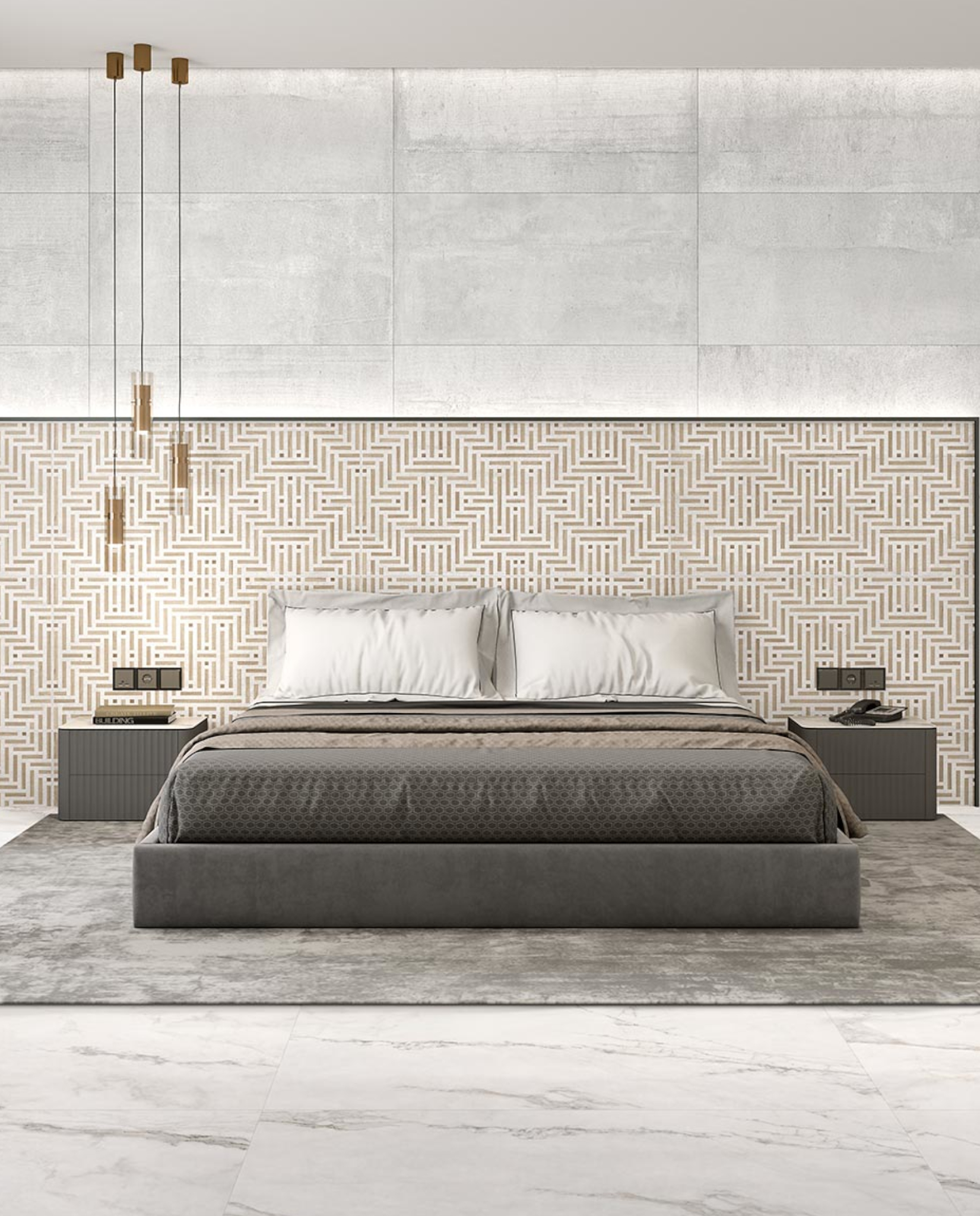 Porcelanato tipo cemento en tono cálido con textura suave y estética equilibrada.